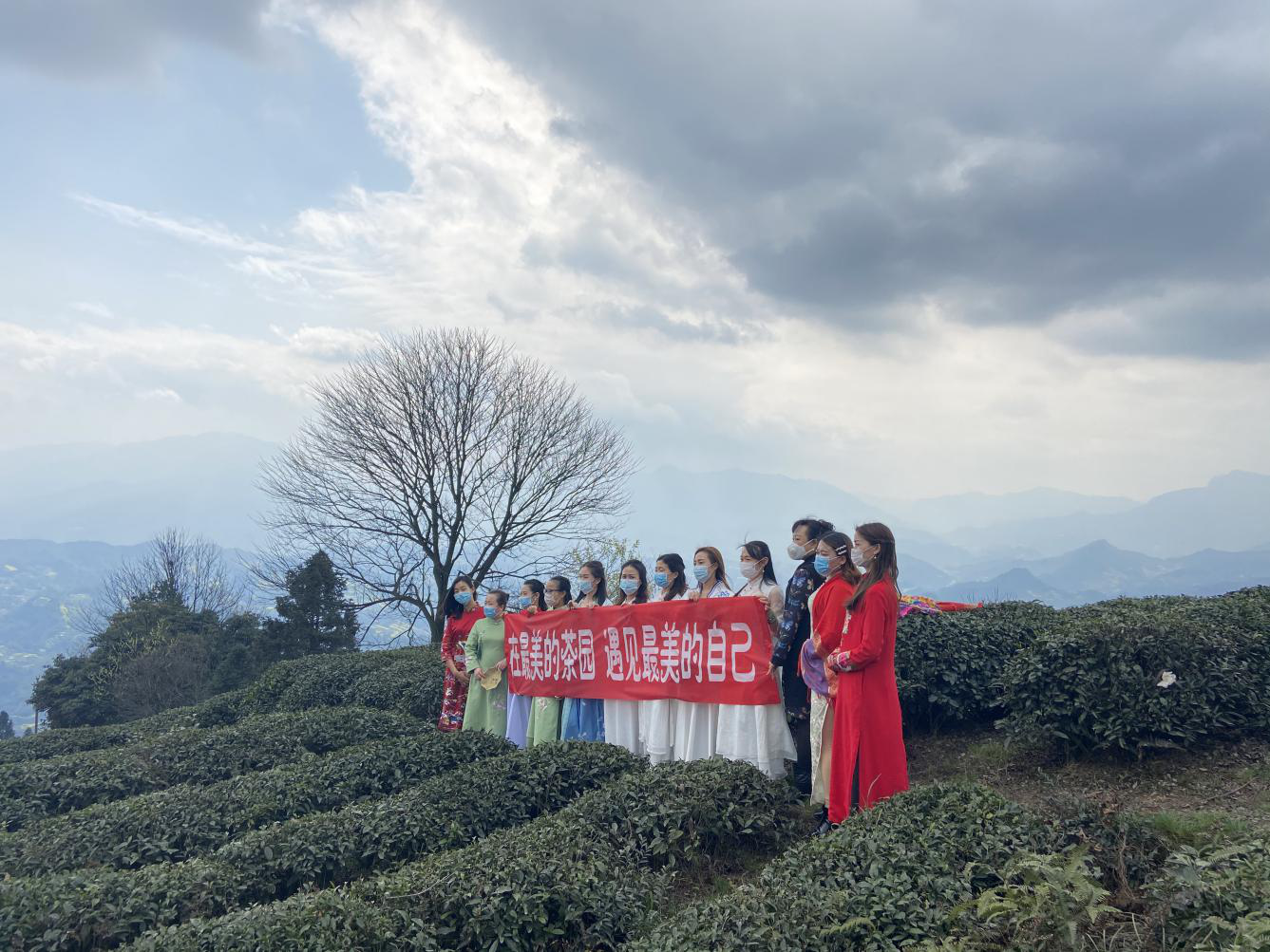 蒙頂皇茶團(tuán)隊(duì)全體女士著盛裝,在接受了公司男同事代表祝福后,整隊(duì)前往蒙頂酒莊,學(xué)習(xí)酒文化、交流個(gè)性化定制業(yè)務(wù)。