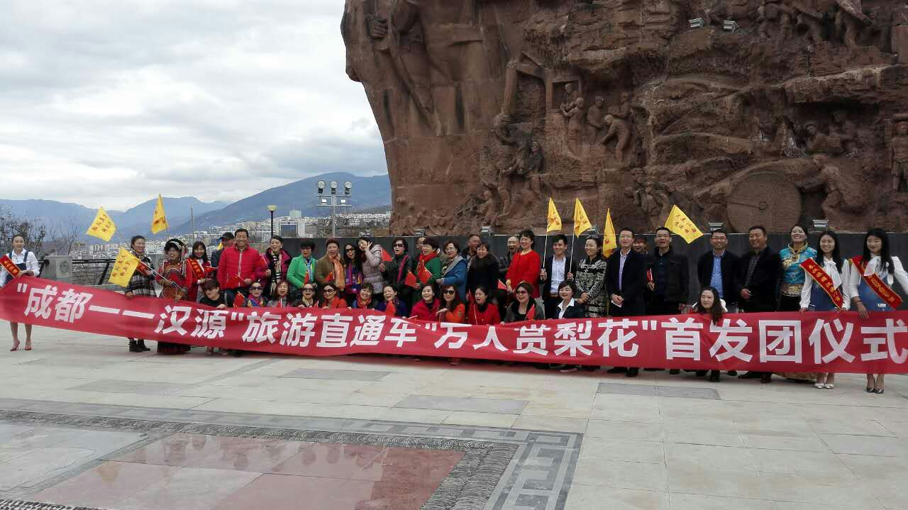 3月10日在成都新南門旅游集散中心和漢源揚帆起航廣場舉行了“成都—漢源”直通車“萬人賞梨花”首發(fā)團(tuán)儀式。漢源縣副縣長龔榮高、縣旅游局局長李毅、成都旅游集散中心旅游營運部主任許蜀錦、成都天府旅行社和雅安文旅公司相關(guān)負(fù)責(zé)人出席了首發(fā)團(tuán)儀式。