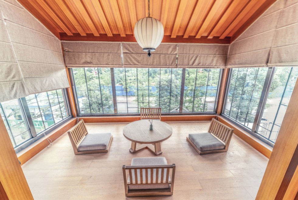 雅安花間堂酒店位于風景優(yōu)美的蒙頂山腳下,酒店的設(shè)計以茶馬司為核心,融入茶馬古驛站上里古鎮(zhèn)四方街、風雨廊、水口、牌坊、戲臺、場鎮(zhèn)、水岸等元素,和三合院、多進院、臺院、穿堂院、漏院、亭、閣、塔的形制。酒店依山傍水,地勢多變,行有風雨廊,歇有亭與閣,所有的房間既是陽光房,也是聽雨閣,配合石板小橋、山中棧道,給游客提供體感更細膩的富氧步行健身線路。