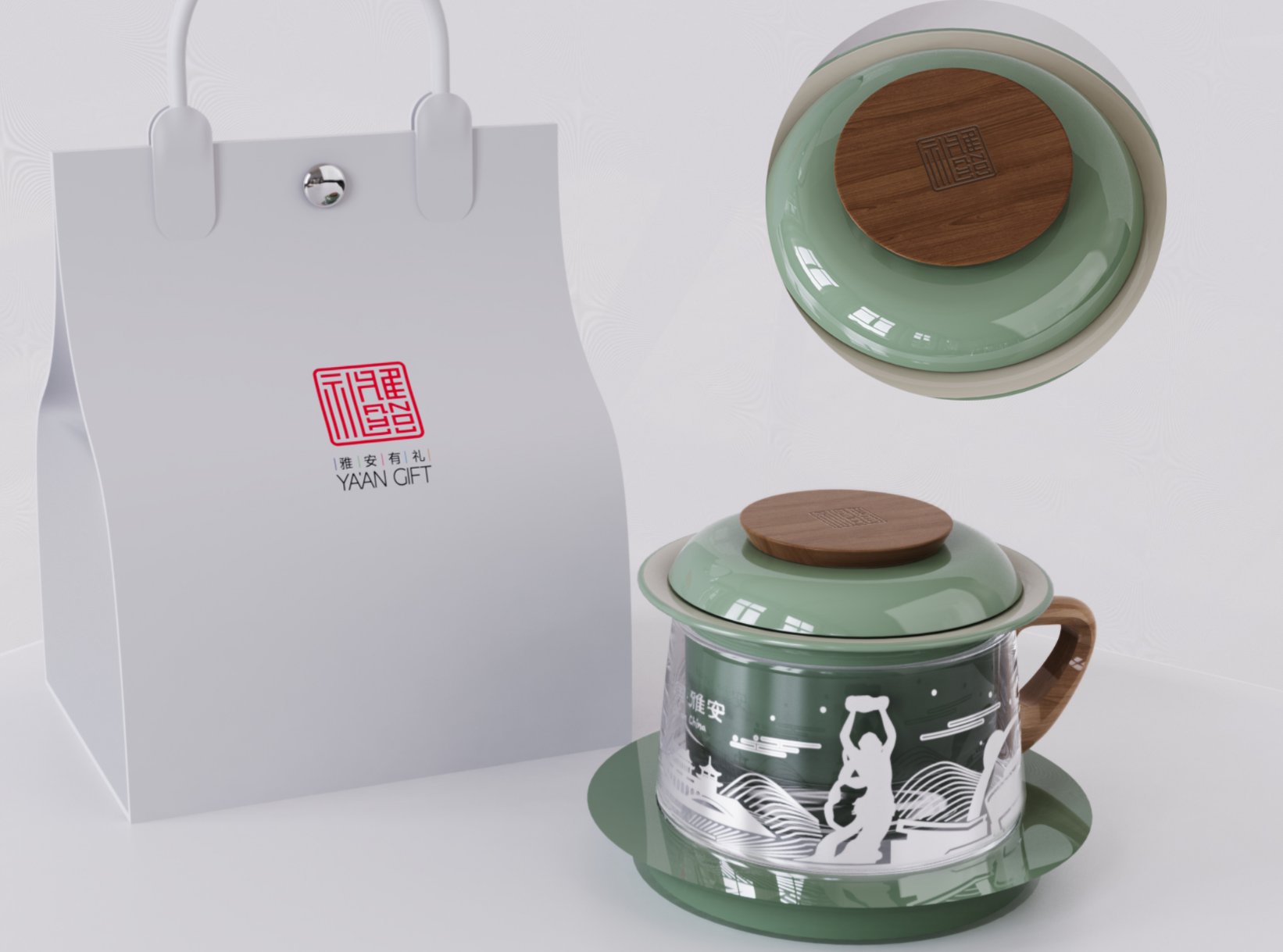 “城市茶咖杯”以女?huà)z雕像、雅安廊橋等雅安標(biāo)志性建筑物形象為設(shè)計(jì)原型,采用飽滿的橡木、冷艷的陶瓷為主料,將茶與咖啡共通的“杯”“碟”文化進(jìn)行交融,展現(xiàn)創(chuàng)意生活用品的實(shí)用化、美學(xué)化和特色化。