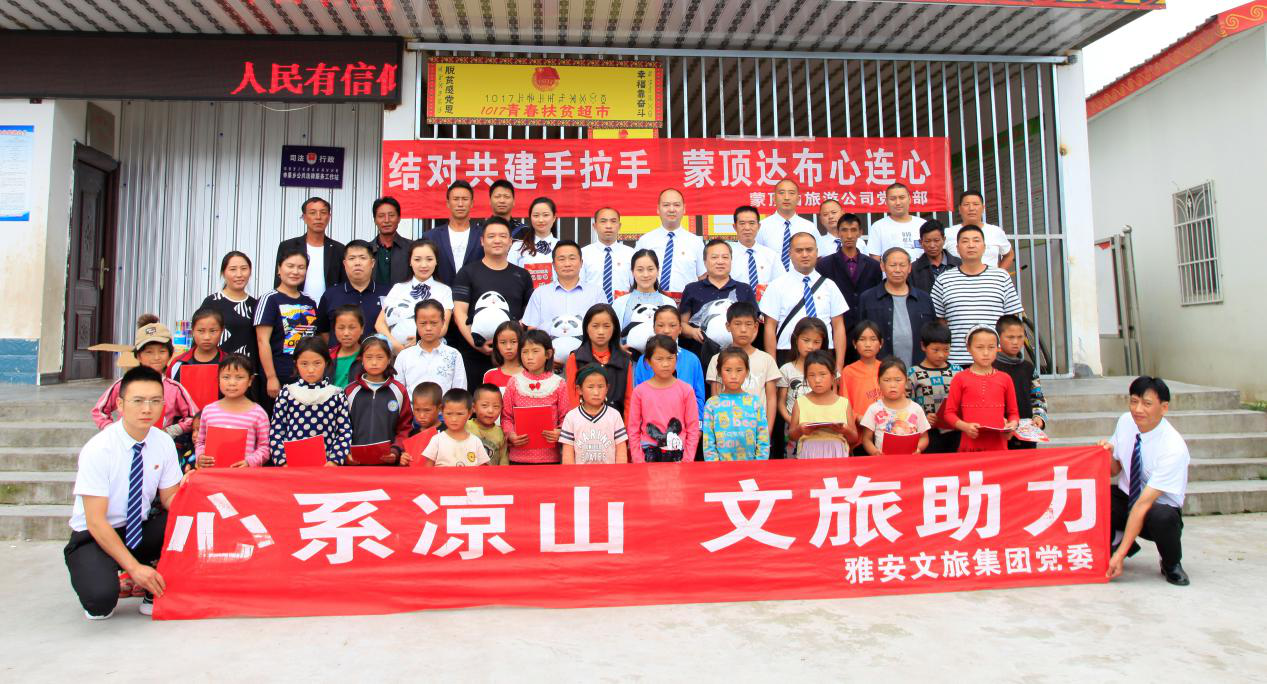 文旅集團(tuán)、蒙頂山旅游公司通過一周的籌備,組織廣大職工捐款、捐物,累計捐贈青少年讀物245本,并購買10000余元文具、體育器材、生活用品等物資。歷時7小時,送抵越西縣申果鄉(xiāng)達(dá)布村,慰問貧困學(xué)生代表,勉勵孩子們學(xué)習(xí)知識增強(qiáng)本領(lǐng),依靠知識改變命運(yùn)。